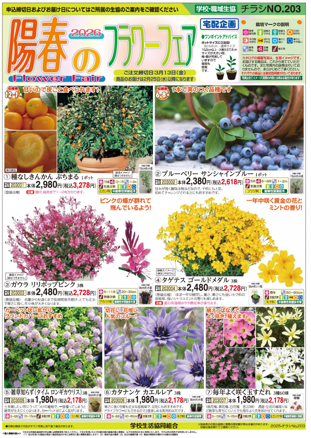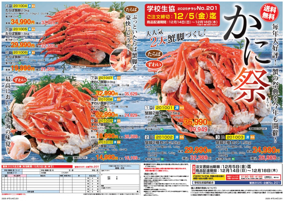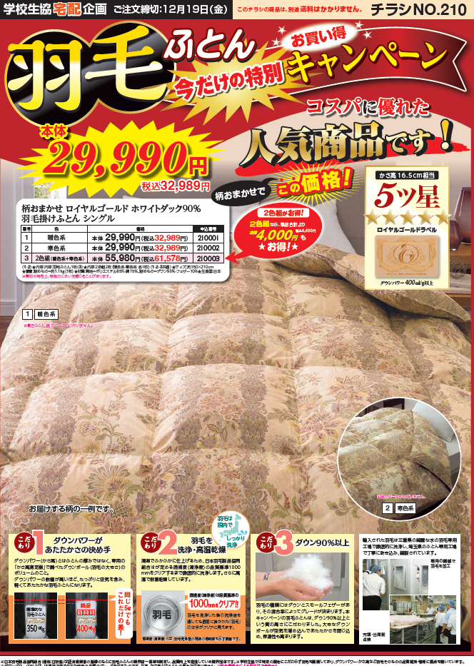 | チラシ学校到着日 | 申込締切日 | 商品お届予定日 |