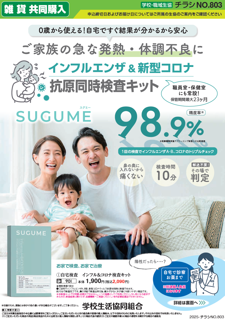 (803)インフルエンザ&新型コロナ抗原同時検査キット![]() 注文フォーム |